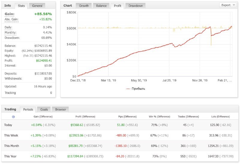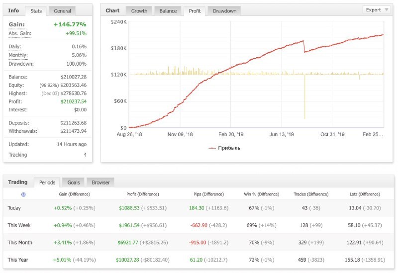 • Средняя доходность: 7-10% в месяц • Торгуем на 7 торговых парах. • Работаем с брокерскими компаниями, которые на рынке 10-12 лет.